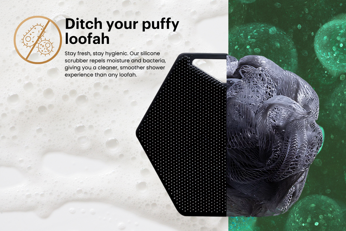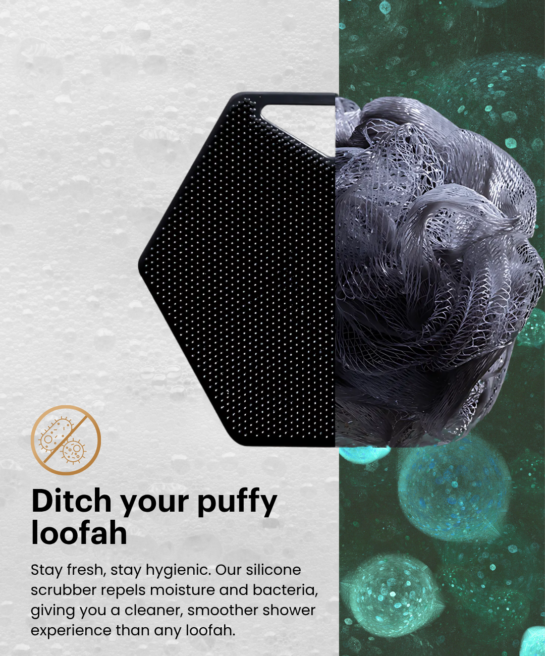 Made from 100% antibacterial silicone, it’s built to outlast any loofah, dry fast, and stay hygienic with every use. The improved grip base keeps it secure in your hand, making every shower smoother, cleaner, and way more satisfying.